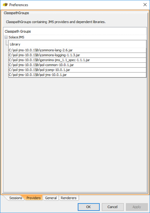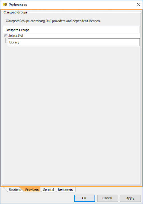 Step 3. Add a new Classpath group, by right clicking on "Classpath Groups" and selecting Add Group from the popup menu. Type "SolaceJMS" in the Classpath group name text field and hit OK.