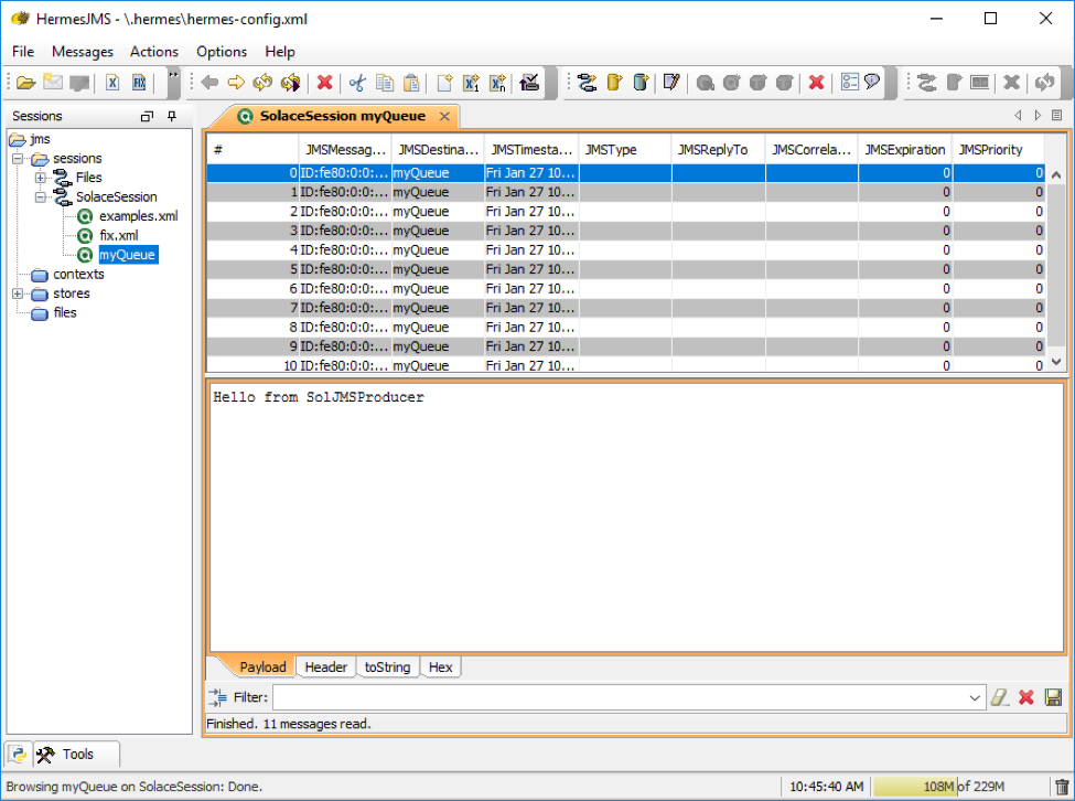 Step 9. Hit "OK" to finish creating the new Hermes JMS session.